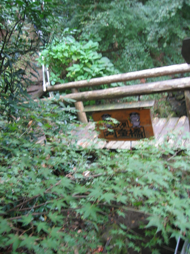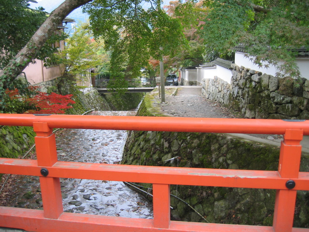 ちょいと不安な河童橋 2本も川が流れているせいか河童伝説でもあるんでしょーか でもどっちもものすごく浅くてとても河童が暮らせるとは思えません。 呂川沿いではかわいいのかかわいくないのかよくわからん河童のイラストをよく見かける 土産屋には「アイスきゅうり」なるものが売っている でも多分ただの冷えたきゅうり。 山の寒ーい紅葉シーズンにもお構いなしで看板が立っているのは何故だろう 見てるだけで寒い そんできっと売れてない。 三千院に戻る 写真Tへ(内部) 戻る