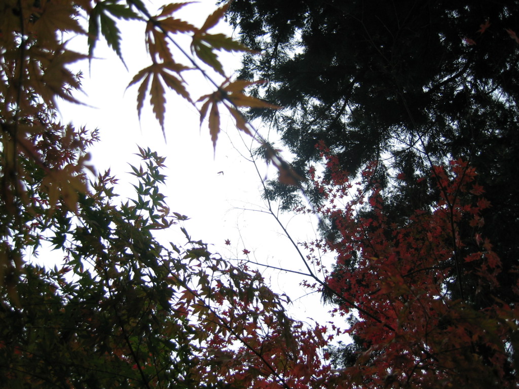 まわりは大体こんな調子 11月だってのに青々としたもみじ。 じゃあ一体いつ赤くなるつもり?そのまま枯れるんじゃないの